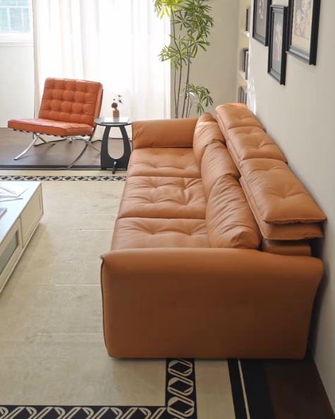 & Free ShippingExperience luxury and convenience with this plush, remote-controlled reclining sofa. Upholstered in rich, earthy tones, it features adjustable headrests and footrests, perfect for relaxing, working, or even napping. Its spacious design comfortably fits your whole family, while built-in technology makes comfort effortless. A sleek blend of modern style and functionality—your ultimate lounging solution.